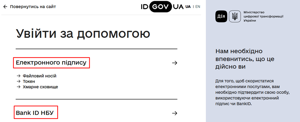 Вхід за допомогою електронного підпису (КЕП)