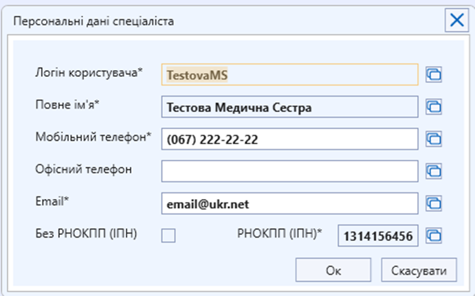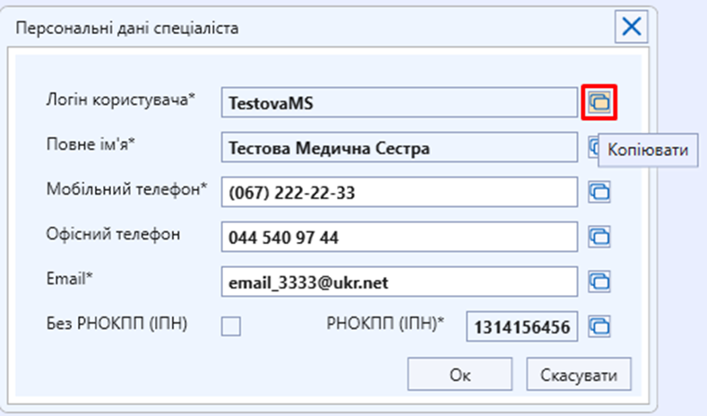 Для зручності кожне поле на картці «Персональні дані спеціаліста» можна скопіювати, натиснувши відповідну кнопку: