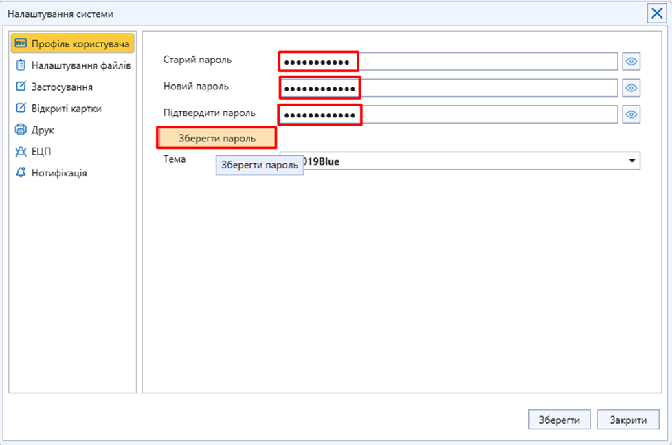 Увага! Скопіювати пароль з відповідних полів немає можливості, можна переглянути натиснувши на кнопку![]()