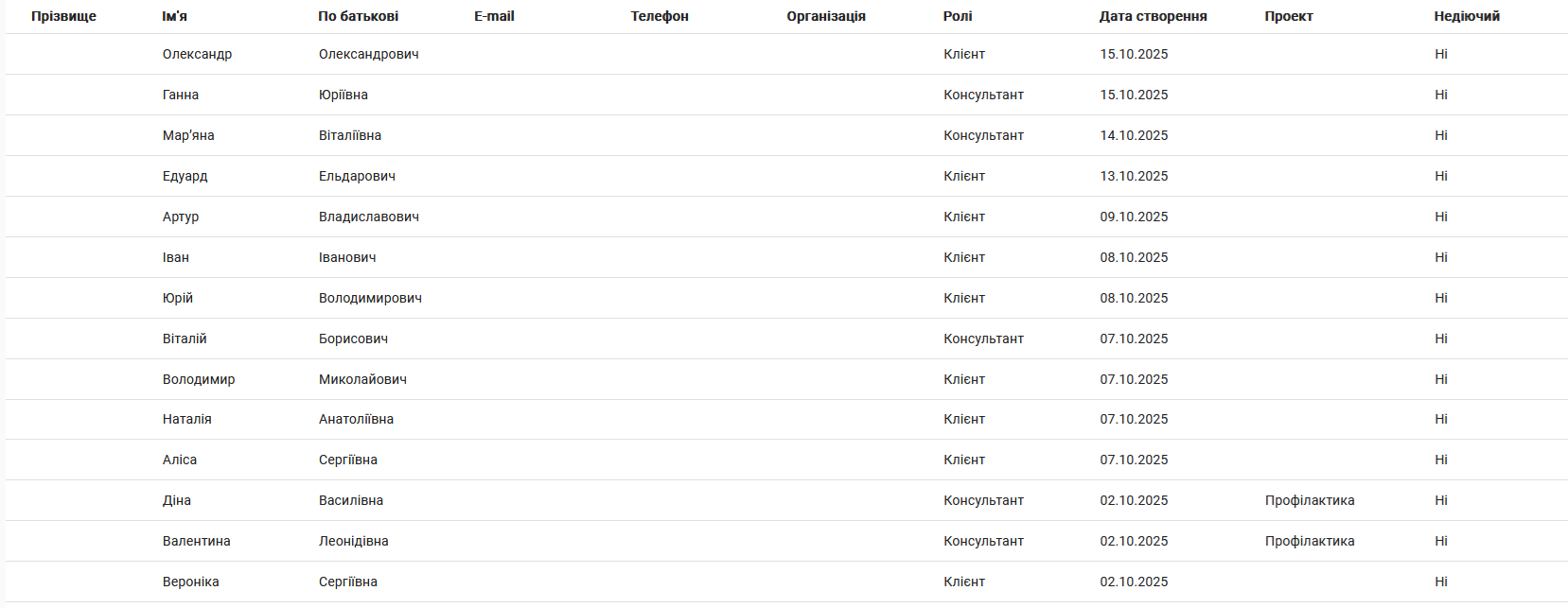- додано можливість експорту даних з реєстру «Користувачі»;