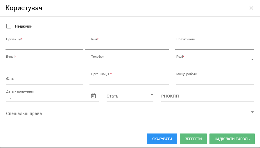 - розширено набір полів картки користувача новими атрибутами: «Дата народження», «РНОКПП», «Стать».