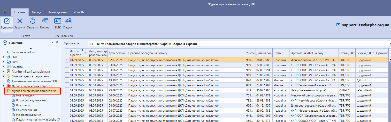 1. Реалізовано реєстр «Журнал відстеження пацієнтів ДКП»: