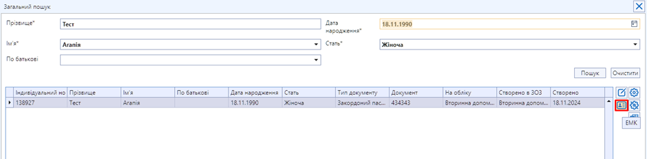 5. Додано кнопку «ЕМК» в форму «Загальний пошук»