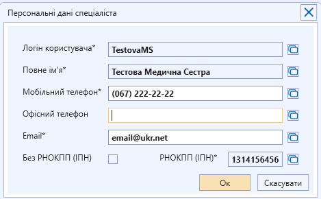 2. Внесені зміни в профілі та в картці користувача/спеціаліста