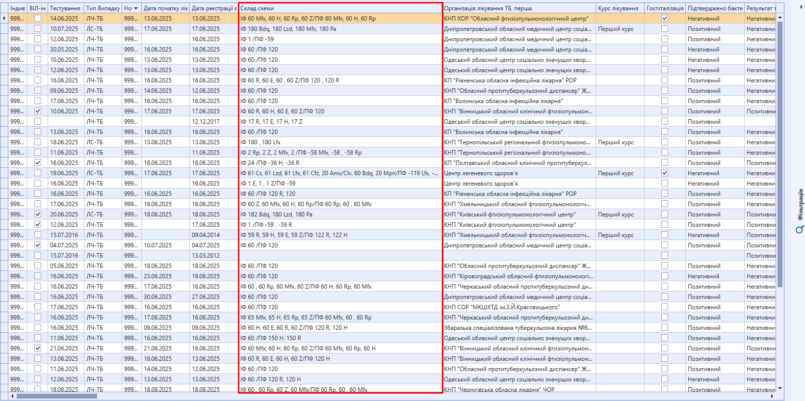 2. Додано колонку "Склад схеми" в реєстр "Аналітичні дані за Випадками ТБ":